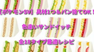ポケモンSV【ポケモンSV】具材1つ&パン捨てOK!色違いサンドイッチ全18タイプ最適レシピ 【ポケモンSV】具材1つ&パン捨てで失敗ゼロ!色違いサンドイッチ全18タイプの最適レシピを公開。スパイスの法則も解説し、最高効率の厳選をサポートします。 2025.12.05ポケモンSV